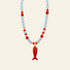 Inspired by vibrant coral reefs and sunlit tropical waters, the Coral Reef Fish Charm Necklace by Jewelry by Hannah B brings joyful color and relaxed elegance together in one standout piece. Ocean-blue and coral-red beads echo the hues of crystal waters, while a detailed red enamel fish charm with gold accents adds a playful, conversation-starting finish.