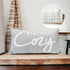 • Features “Let’s Get Cozy” text design