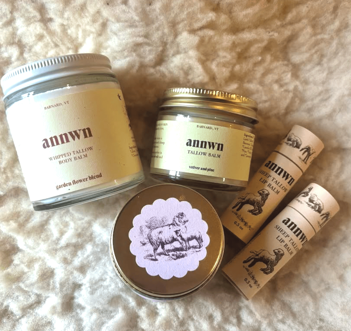 Annwn creates a range of sheep tallow-based skincare, including nourishing balms, body and face moisturizers, and protective tallow blends that support hydration, barrier strength, and skin health.