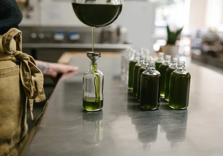 HEMP SEED OIL is cold-pressed from the hemp seed and therefore does not contain any cannabinoids. It is a super dark green oil with a high chlorophyll content and is loaded with antioxidative properties. Perfect for oily skin as it absorbs quickly and helps balance sebum production.