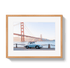 Classic engineering meets iconic American scenery in Golden Gate 356, a striking Johnny Vacay print featuring a vintage Porsche 356 parked along the waterfront with the Golden Gate Bridge rising behind it. Soft morning light illuminates the red suspension towers, the rippling bay, and the elegant curves of the car — creating a scene that feels cinematic, timeless, and unmistakably Californian.